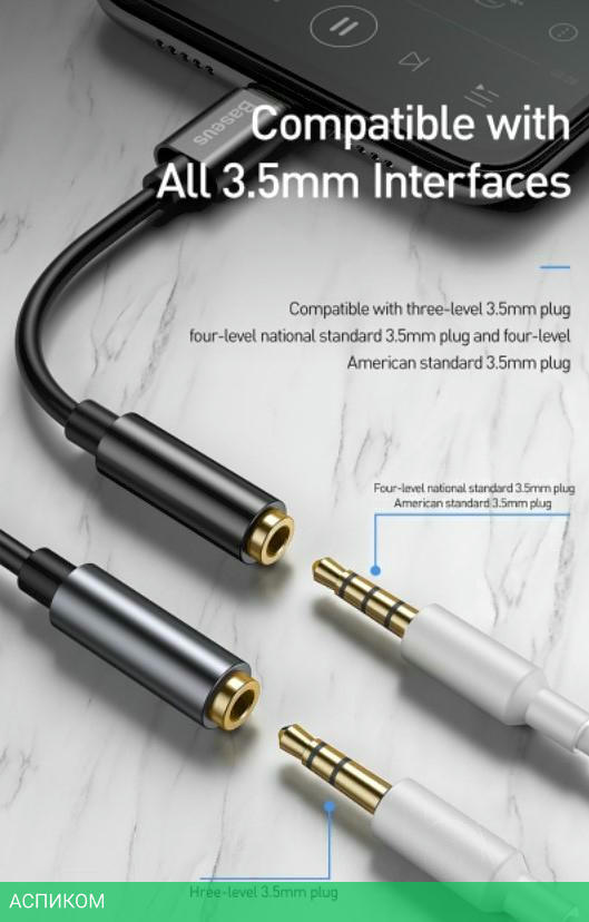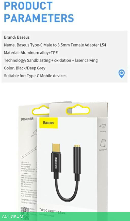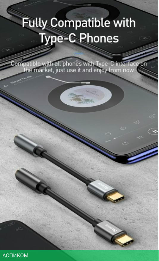 черный / адаптер / для наушников / передача аудио / USB 2.0 Type-C; 3.5 мм jack / 0.09