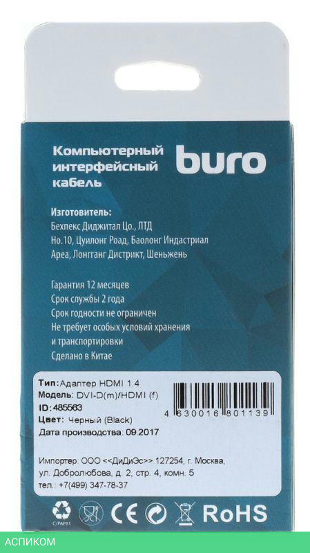 адаптер / для av-аппаратуры / передача видео / черный / DVI; HDMI