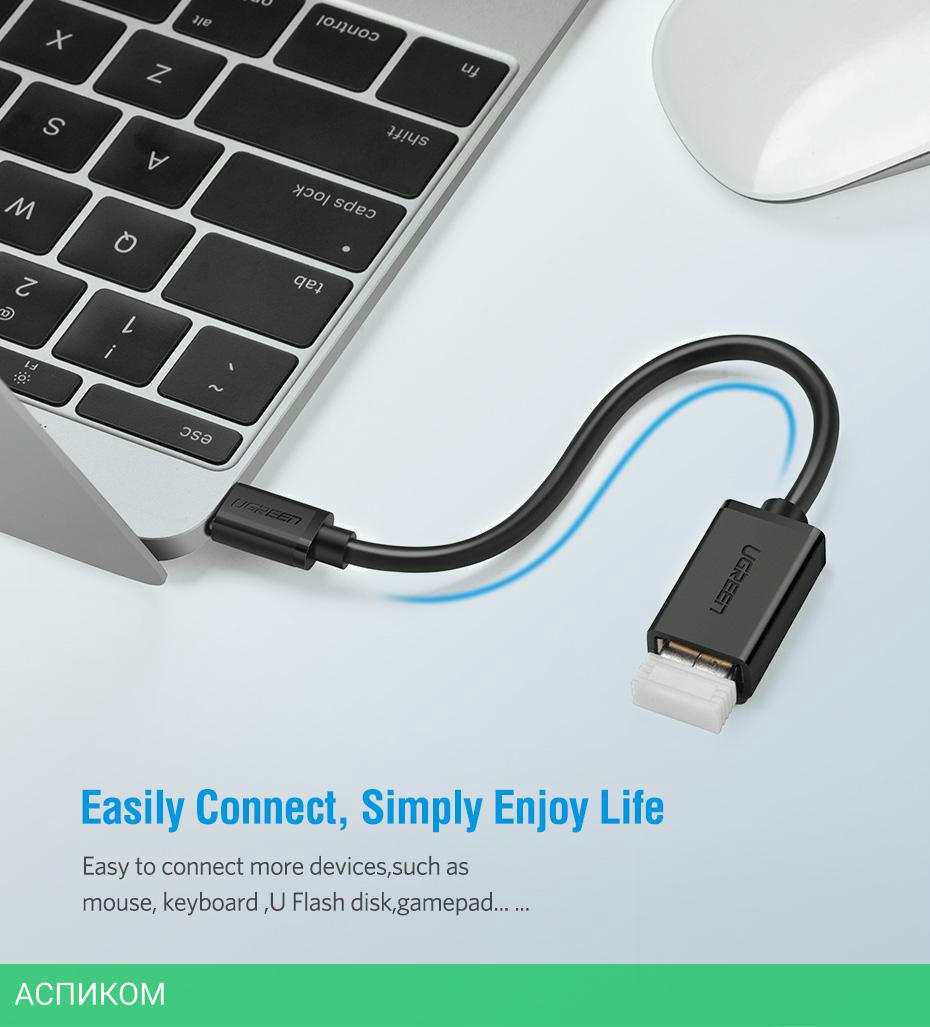 адаптер / для компьютера; для смартфонов и планшетов / передача данных / USB 2.0 Type-C; USB 2.0 Type-A / 0.12 / черный