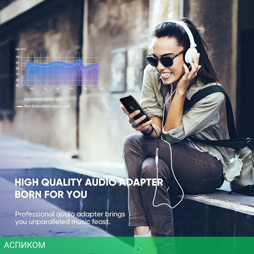 адаптер / для смартфонов и планшетов / передача данных / 3.5 мм jack; Lightning / 0.1 / черный