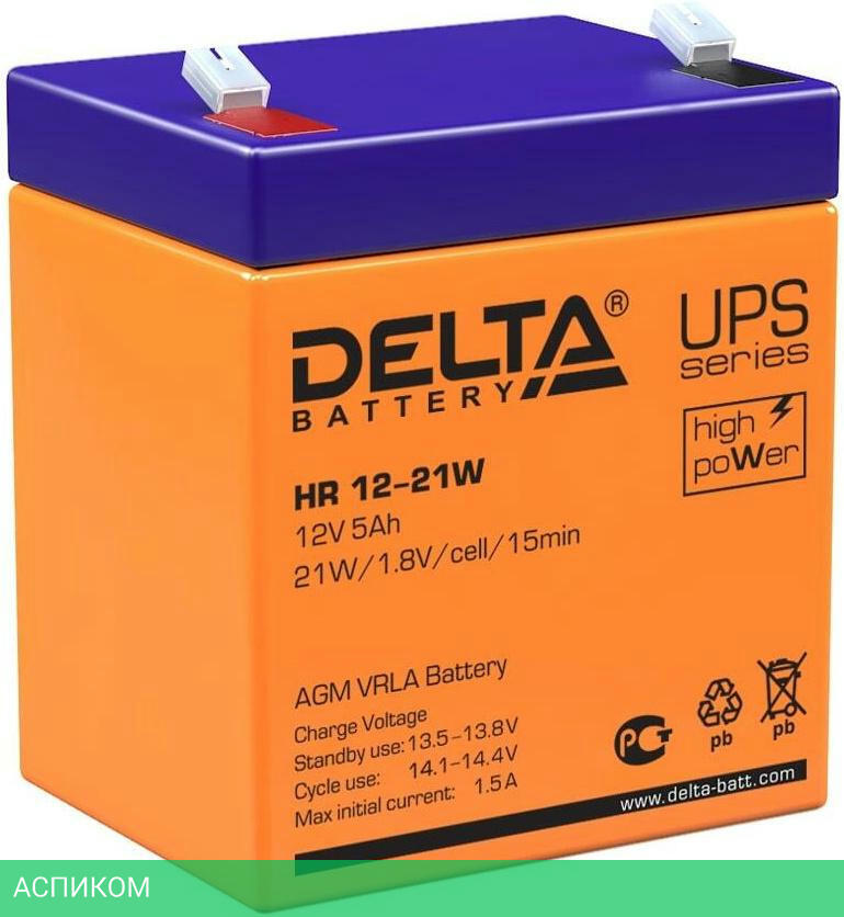 аккумулятор для ИБП / AGM / 5.0 / 75.0 / 12.0 / F2 / 90.0 / 107.0 / 70.0 / 1.8
