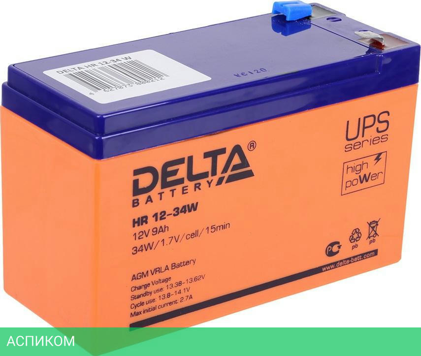 аккумулятор для ИБП / AGM / 9.0 / 130.0 / 12.0 / F2 / 65.0 / 94.0 / 151.0 / 2.62