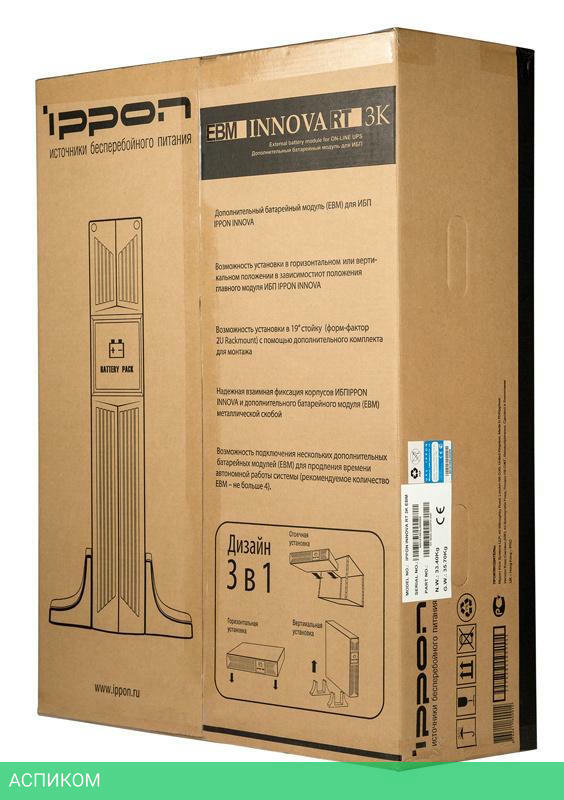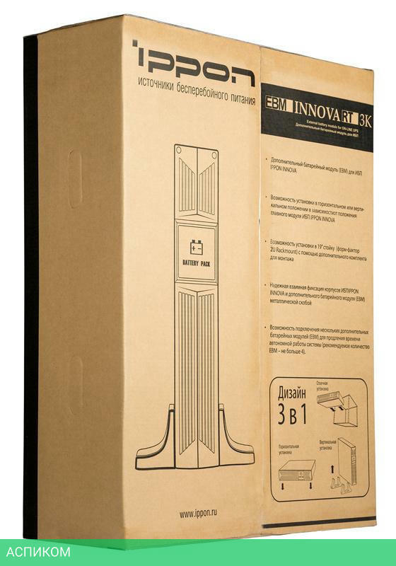 Дополнительный батарейный модуль EBM Innova RT, Гарантийный талон, Монтажные планки для установки в стойку 2 шт , Дополнительные расширительные вставки для вертикальной установки 2 шт , Фиксирующая металлическая скоба и комплект винтов для фиксации, Кабель заземления