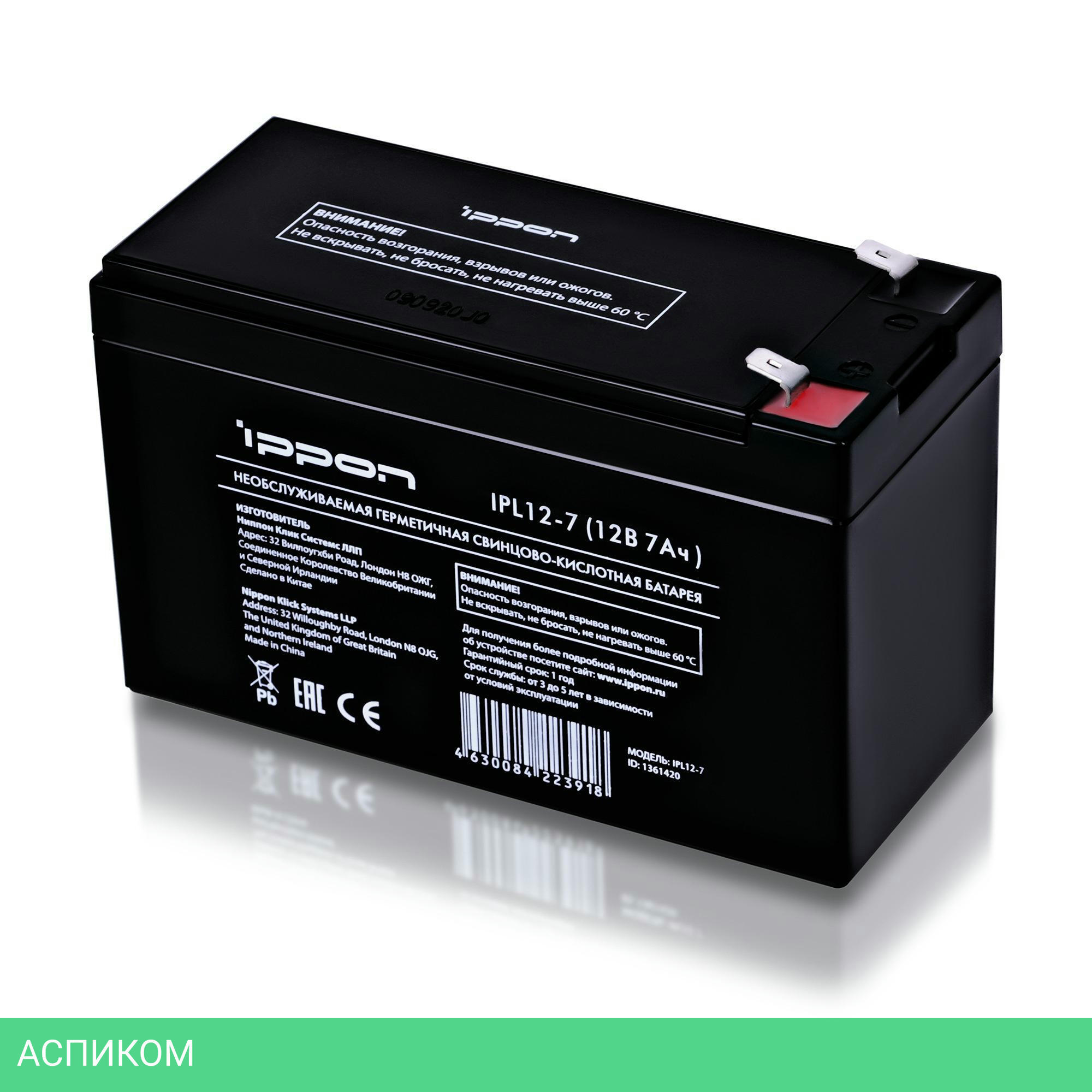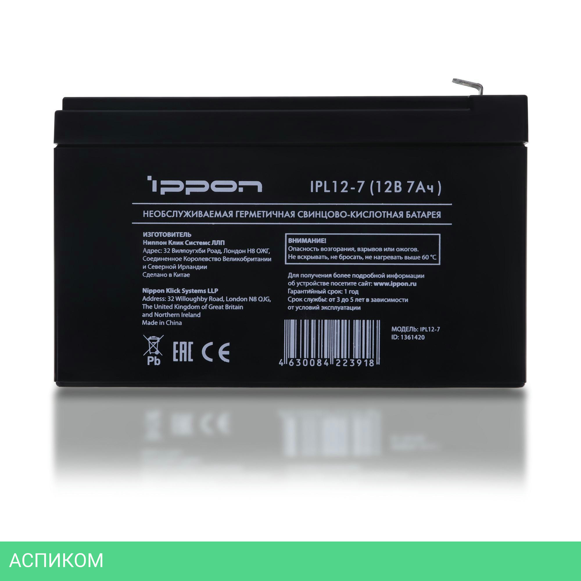 Срок службы до 5 лет. Напряжение питания 12В. Рабочая температура -15 ~ 50 °C (разряд). Максимальный ток нагрузки 105А. Емкость аккумулятора 7 Ач. Клеммы F2 (7.95 x 6.35 мм)