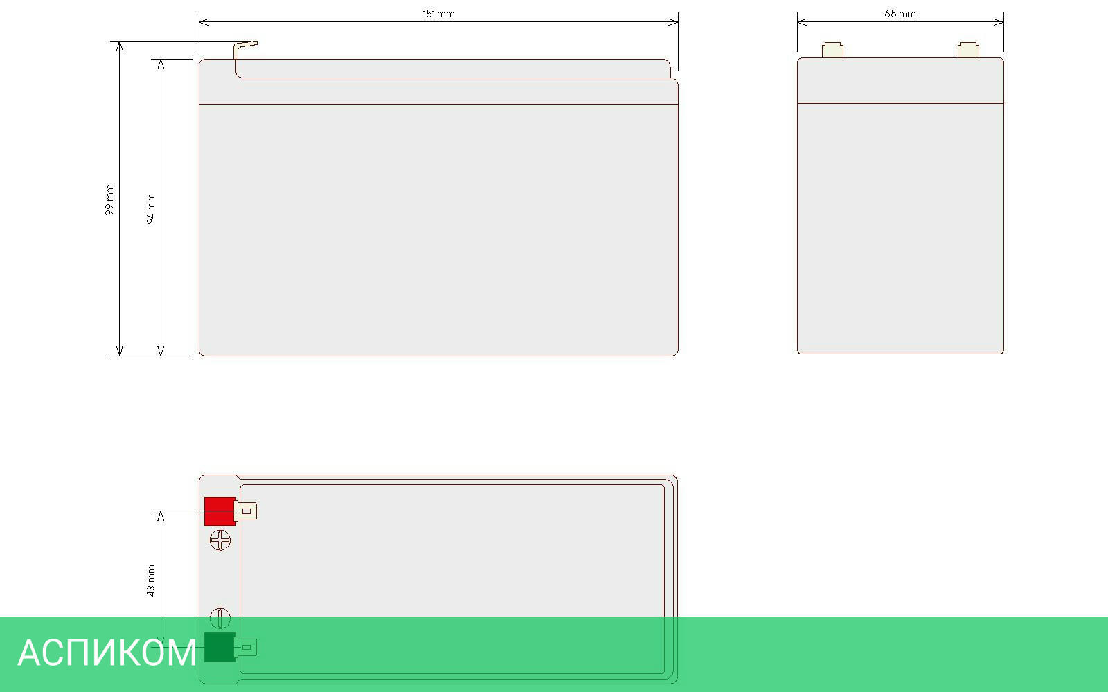 аккумулятор для ИБП / AGM / 9.0 / 90.0 / 12.0 / F2 / 65.0 / 94.0 / 151.0 / 2.5