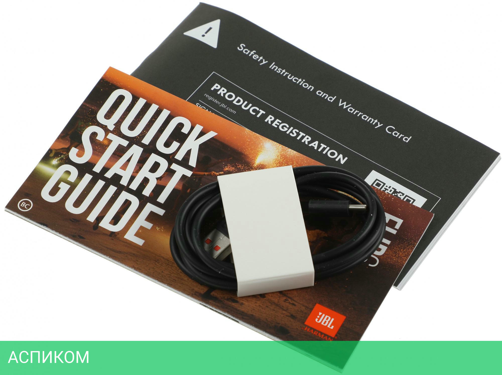 1 x колонка JBL Flip 6, 1 x USB-кабель типа C, 1 x краткое руководство, 1 x гарантийный талон/Паспорт безопасности