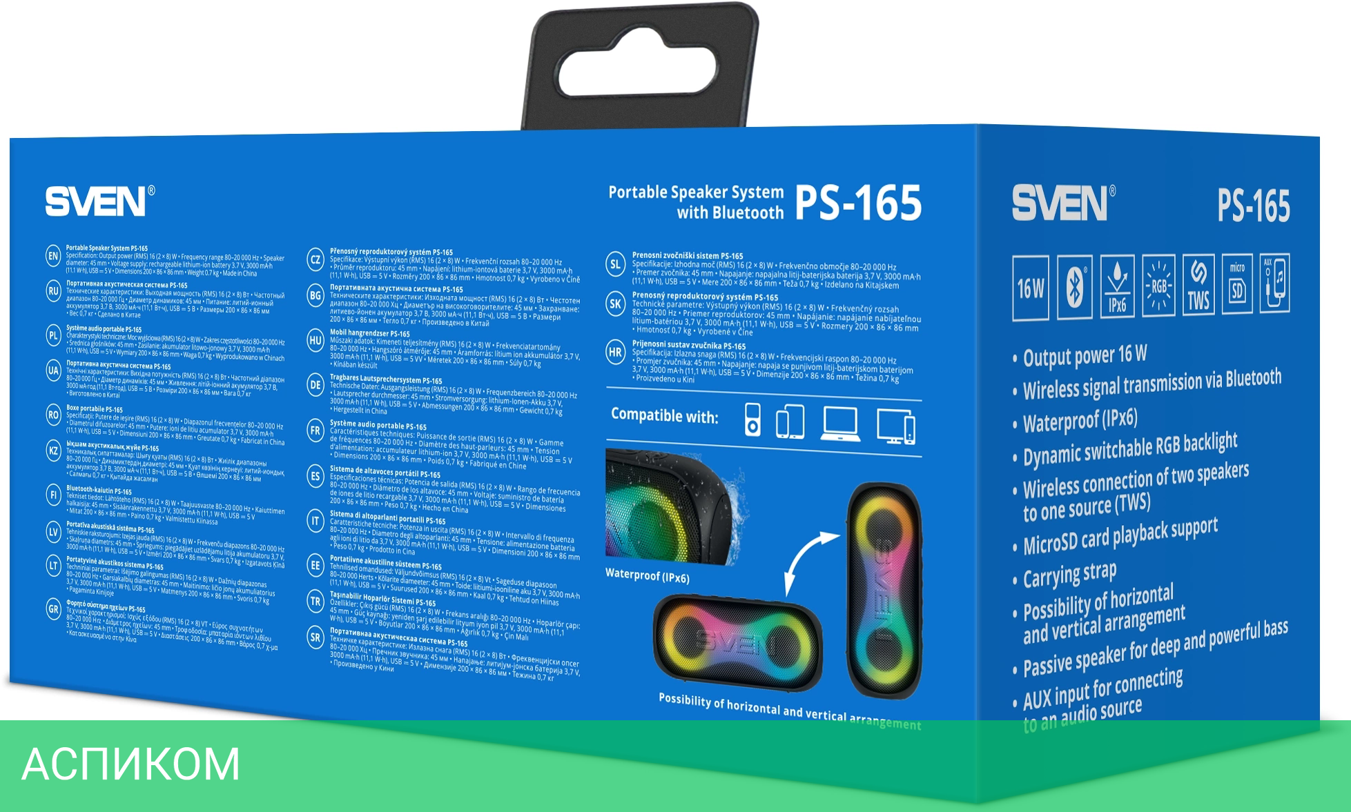 Bluetooth колонка / черный / от аккумулятора / 16.0 / нет / 5.1 / да / microSD / IPX6 / пластик