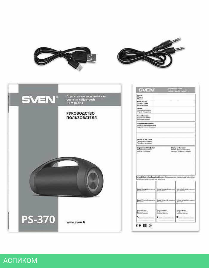 кабель для зарядки (USB Type-C), AUX кабель, документация