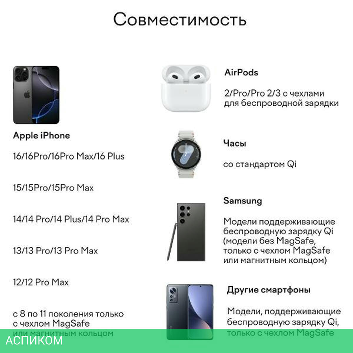 беспроводное зарядное / серый / для телефонов / 1 / 15.0 / да