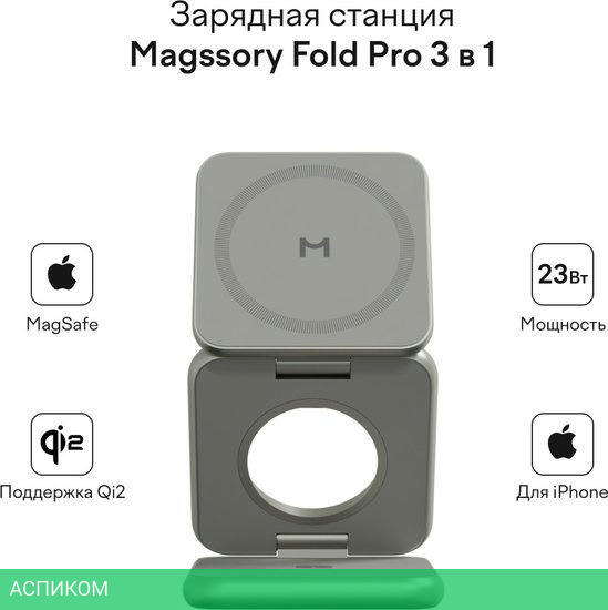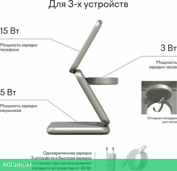 беспроводное зарядное / темно-серый / для телефонов; для наушников; для умных часов; для умных часов и браслетов / 3 / USB Type-C / USB Type-C / 23.0 / да