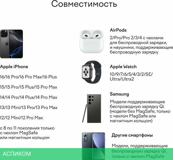 для телефонов; для наушников; для умных часов; для умных часов и браслетов