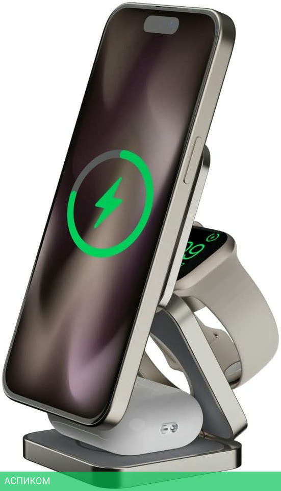 беспроводное зарядное / титановый / для наушников; для телефонов; для умных часов / 3 / MagSafe / USB Type-C / 15.0 / да
