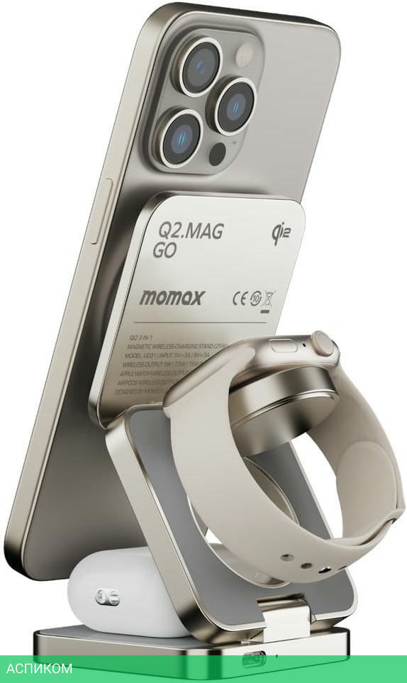 - сертифицировано Apple, создано для Apple Watch - поддерживает беспроводную зарядку iPhone или Qi-совместимого телефона, Apple Watch и AirPods - безопасная беспроводная зарядная технология, сертифицированная по стандарту Qi2 - регулируемый шарнир для идеального угла обзора во время зарядки - вращение телефона на 360° для гибкости просмотра - запатентованная складная компактная конструкция для путешествий и активного образа жизни.