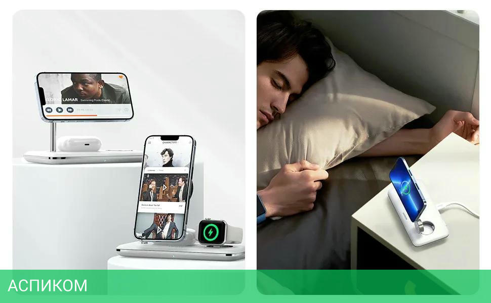 3 в 1 для iPhone, Airpods, Apple Watch, MFi Certified