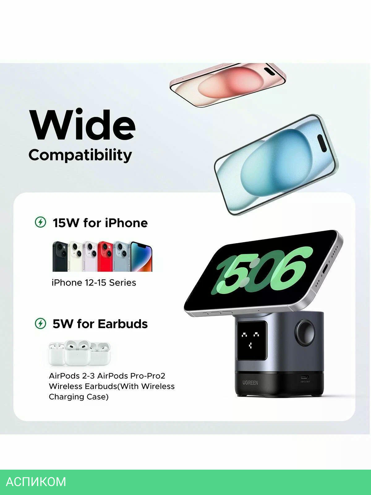 беспроводное зарядное / черный; серый / для наушников; для телефонов / 1 / USB Type-C / USB Type-C / 15.0 / 1.0