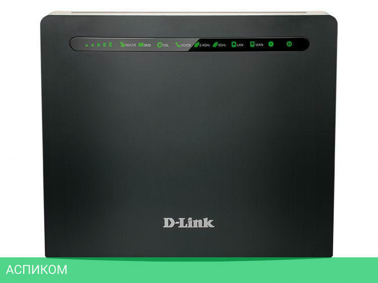 Ethernet-кабель, Маршрутизатор DWR-980, адаптер питания постоянного тока 12В/2,5А, две съемные LTE/3G-антенны, документ «Краткое руководство по установке» (буклет), телефонный кабель с разъемом RJ-11