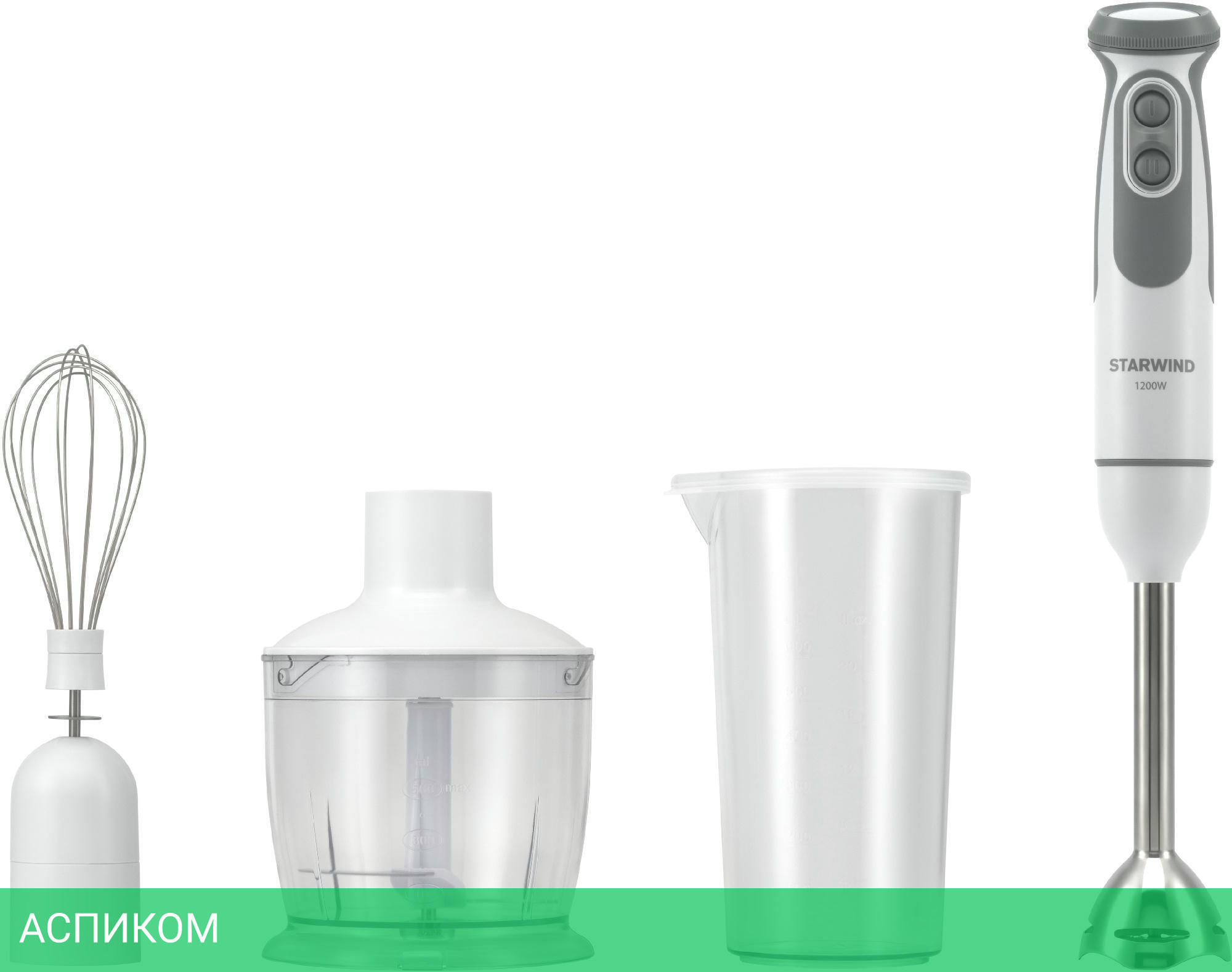 погружной блендер / 1200.0 / 0.5 / 2 / белый / нет / от сети / металл; пластик / да / да / нет / нет / нет / нет / нет