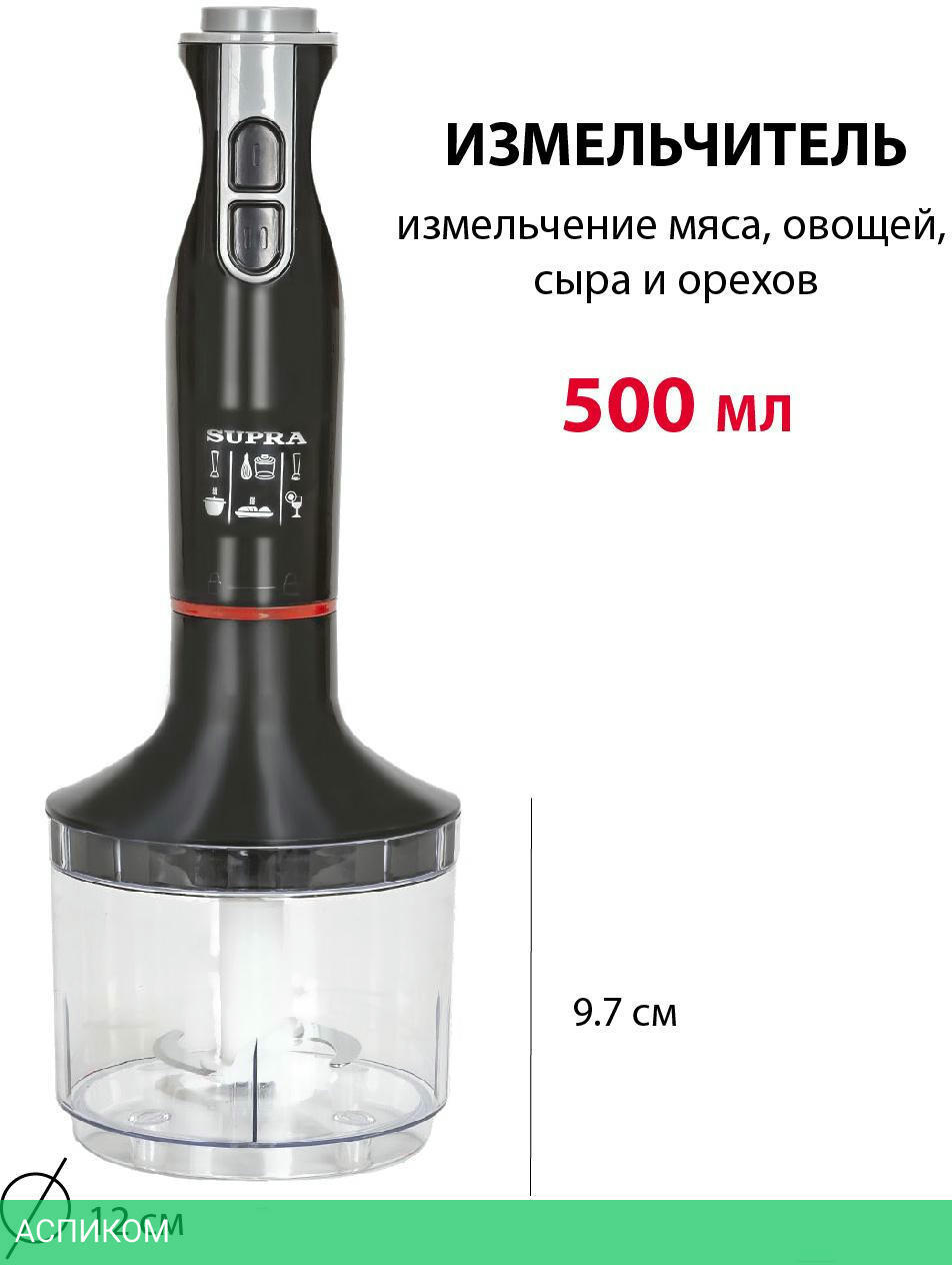 погружной блендер / 800.0 / 0.5 / 2 / черный / нет / от сети / пластик / да / да / нет / нет / нет / да / нет
