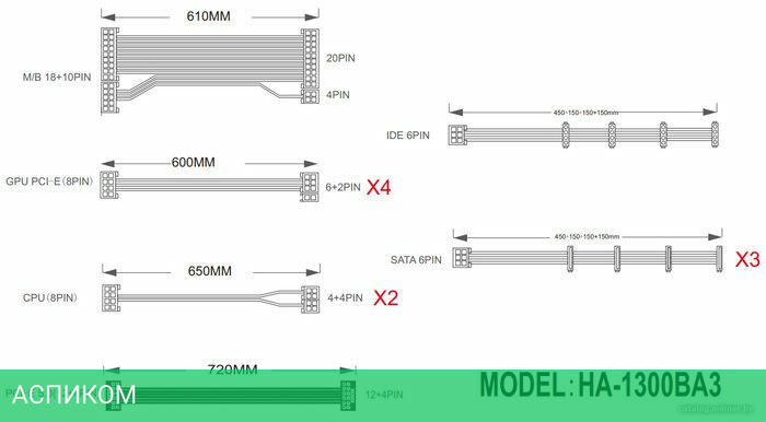 геймерский / 1300.0 / черный / ATX / ATX12V 3.0 / с активным PFC / 120