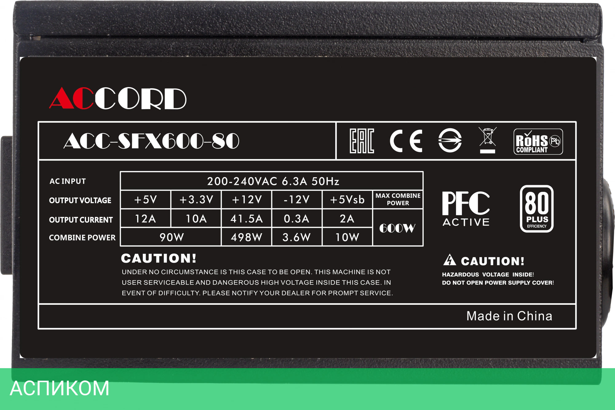 600.0 / черный / SFX / SFX12V 2.31 / с активным PFC / 80.0 / 80 / нет