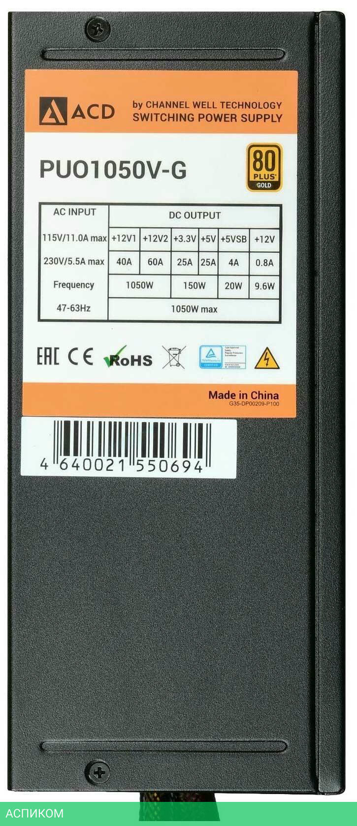 геймерский / да / 1050.0 / ATX / ATX12V 1.3 / черный / с активным PFC / 140 / золотой