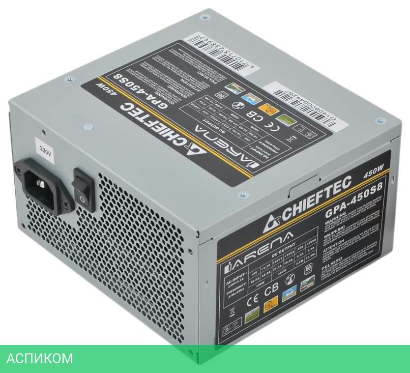 стандартный / 450.0 / серый / ATX / ATX12V 2.3 / нет / с активным PFC / 80.0 / 120 / базовый