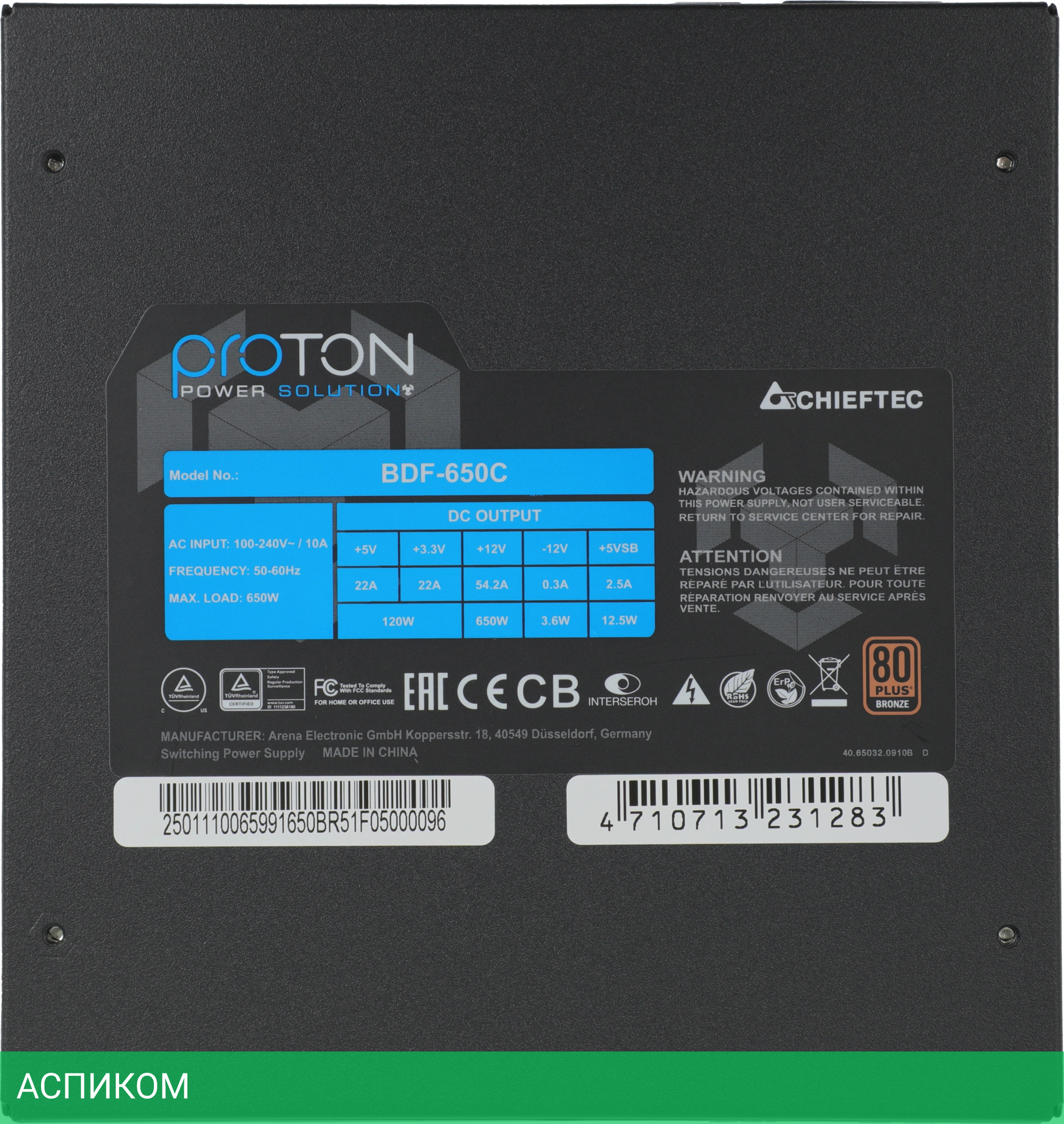геймерский / 650.0 / черный / ATX / ATX12V 2.3 / да / с активным PFC / 85.0 / 140 / бронзовый