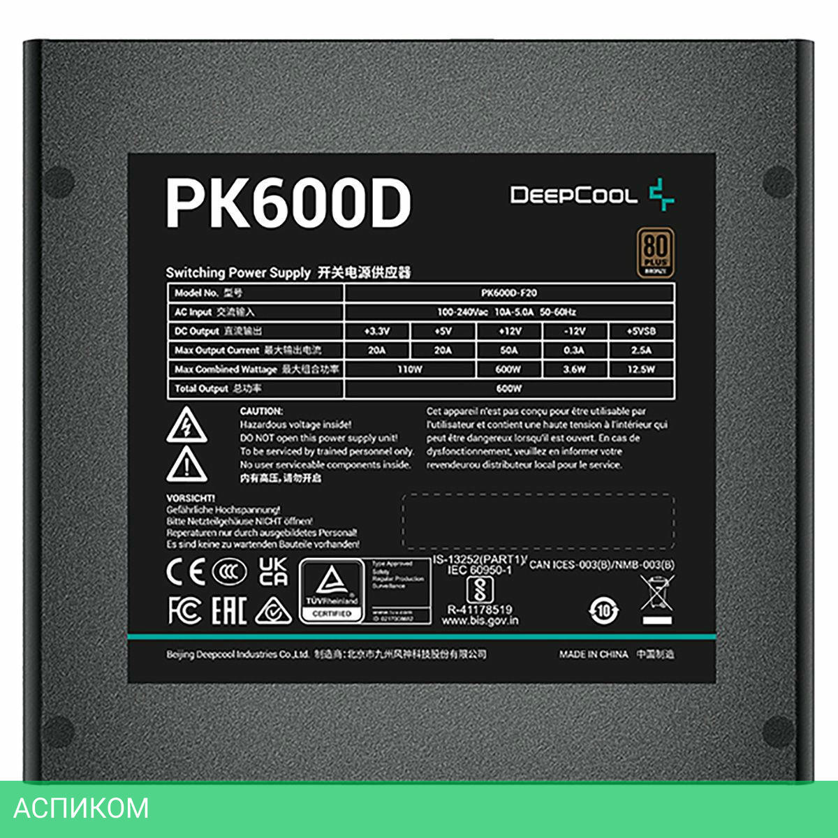 стандартный / нет / 600.0 / ATX / ATX12V 2.4 / черный / с активным PFC / 85.0 / 120 / бронзовый