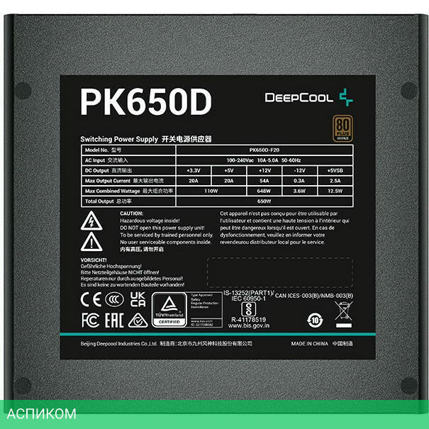 стандартный / нет / 650.0 / ATX / ATX12V 2.4 / черный / с активным PFC / 85.0 / 120 / бронзовый