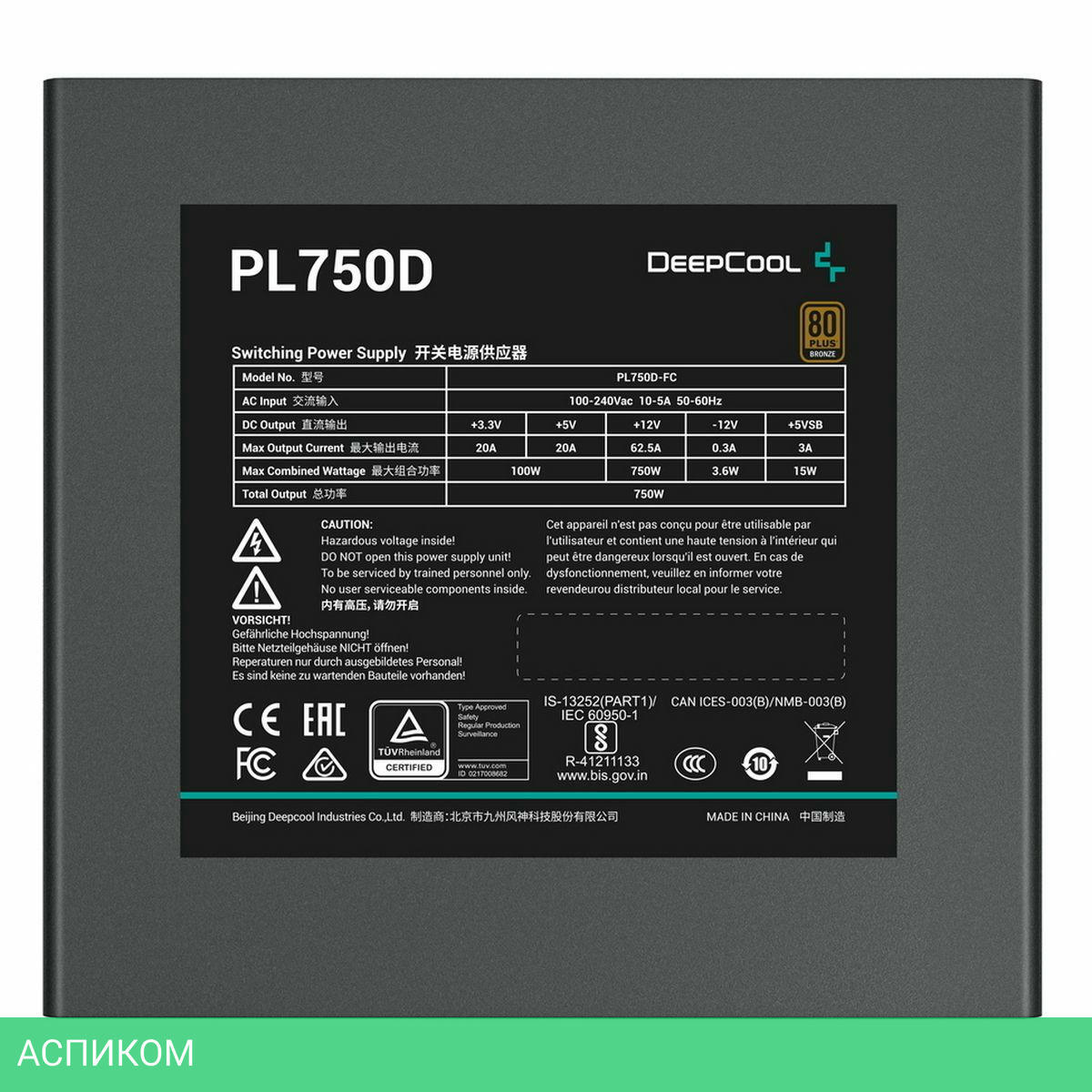 геймерский / 750.0 / черный / ATX / ATX12V 3.0 / нет / с активным PFC / 85.0 / 120 / бронзовый