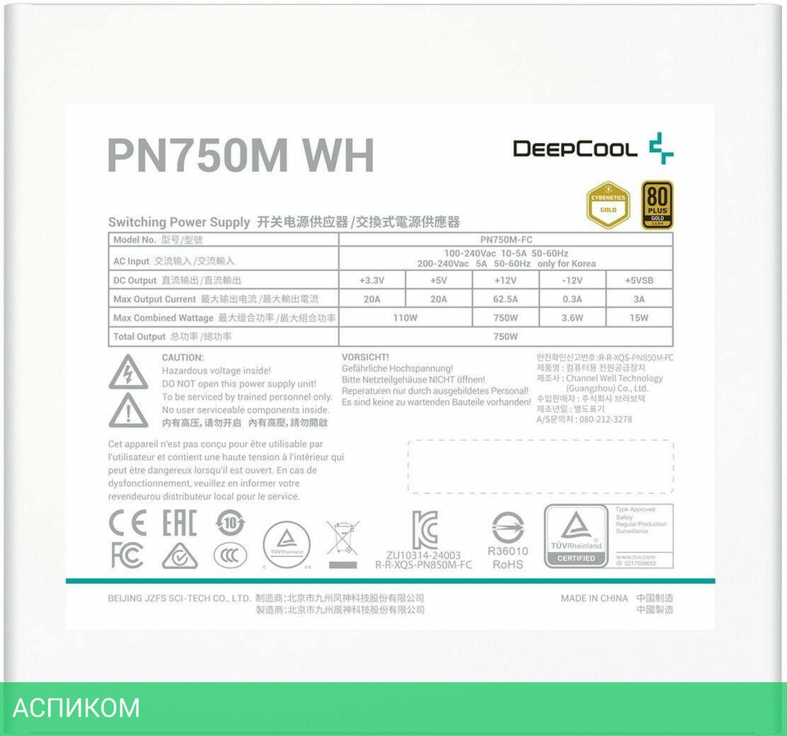 геймерский / 750.0 / белый / ATX / ATX12V 3.1 / с активным PFC / 90.0 / 120 / золотой