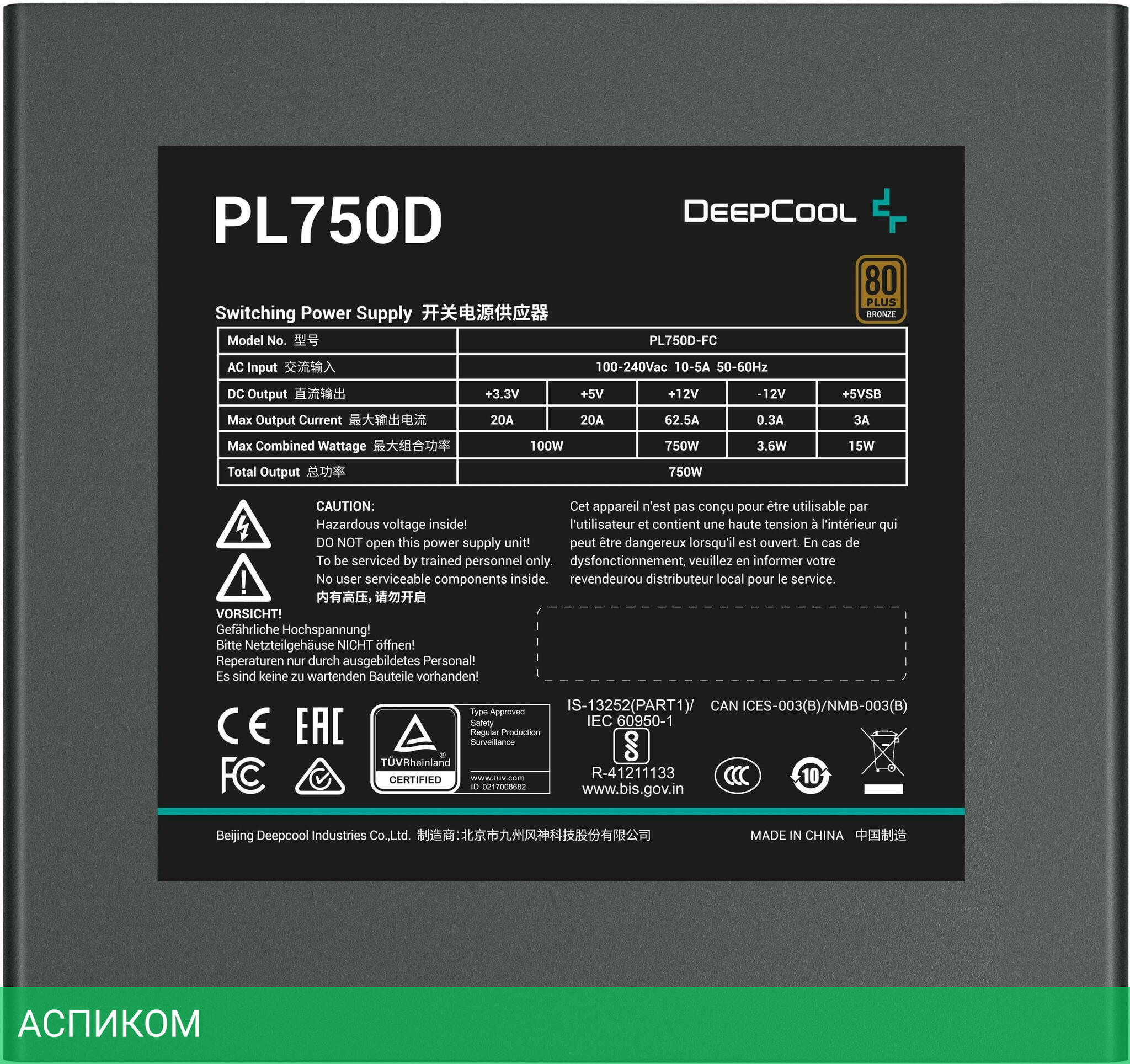 геймерский / нет / 750.0 / ATX / ATX12V 3.0 / черный / с активным PFC / 85.0 / 120 / бронзовый