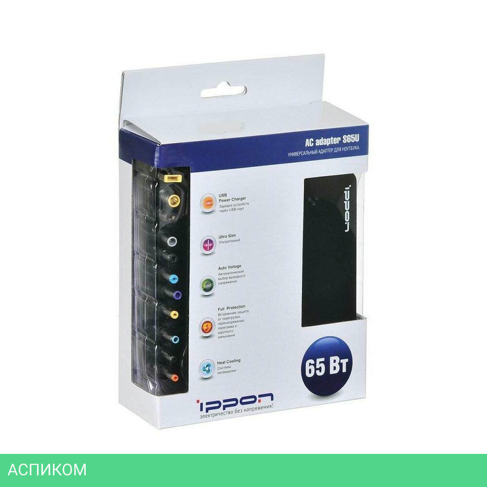 Блок питания для ноутбука Ippon S65U, шнур питания для подключения к сети переменного тока, комплект выходных разъемов M1-M8, руководство пользователя