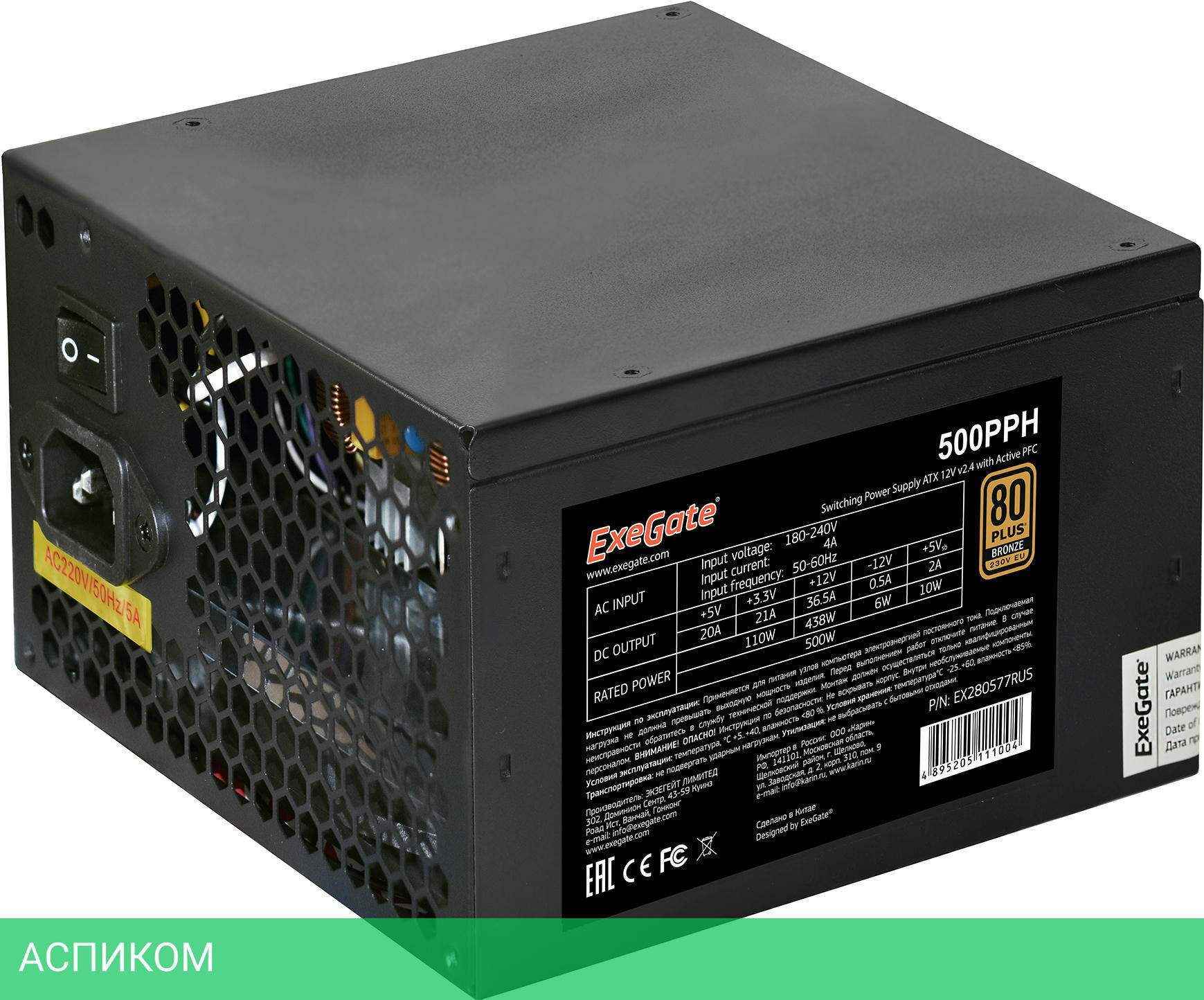 стандартный / нет / 500.0 / ATX / ATX12V 2.4 / черный / с активным PFC / 88.0 / 120 / бронзовый