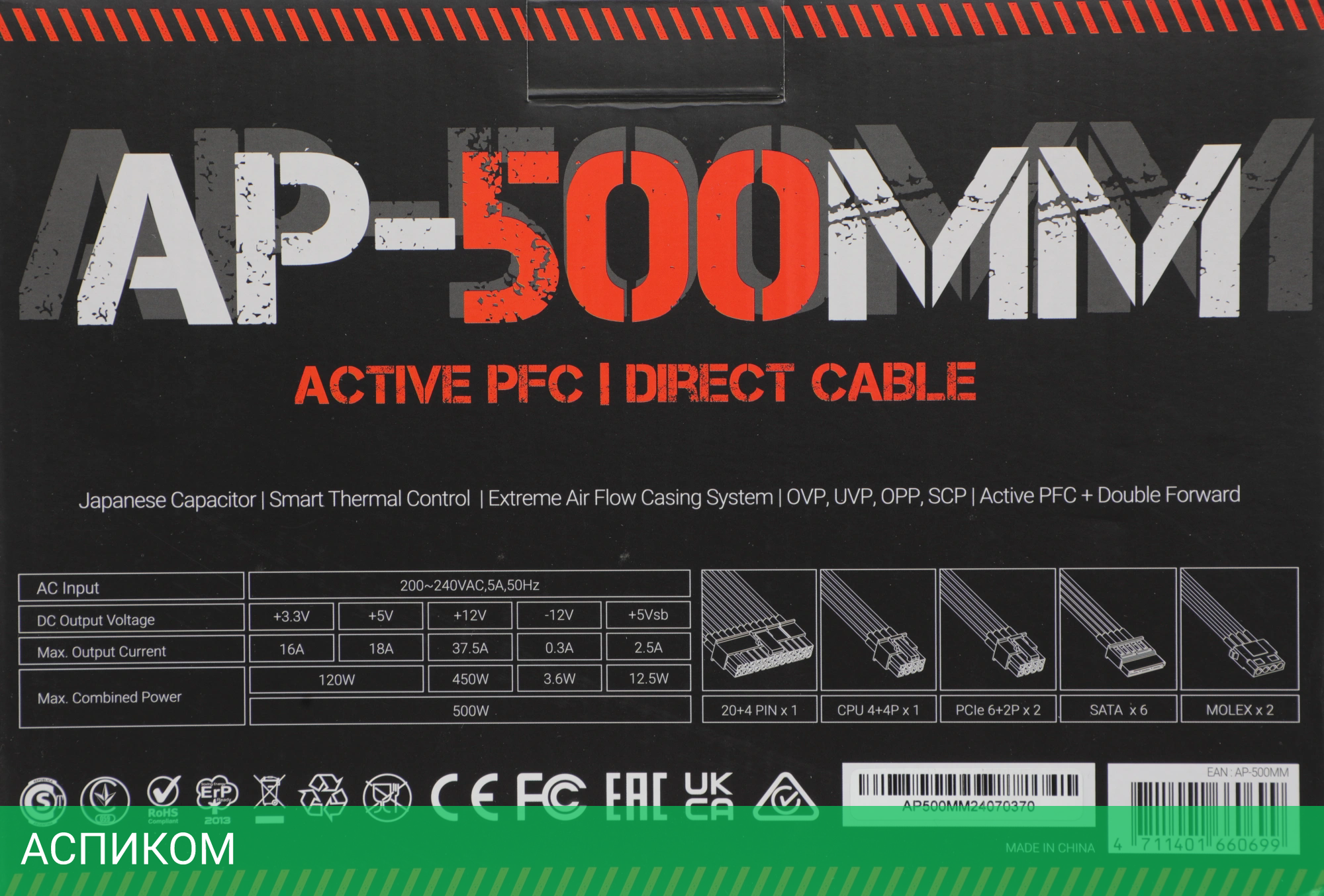 геймерский / 500.0 / черный / ATX / ATX12V 2.4 / нет / с активным PFC / 80.0 / 120 / базовый