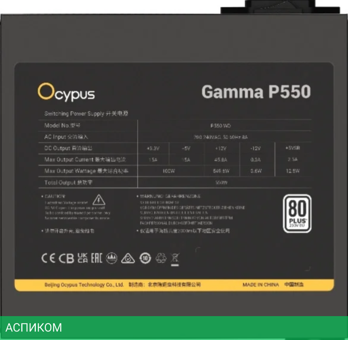стандартный / 550.0 / черный / ATX / ATX12V 2.53 / нет / с активным PFC / 85.0 / 120 / базовый