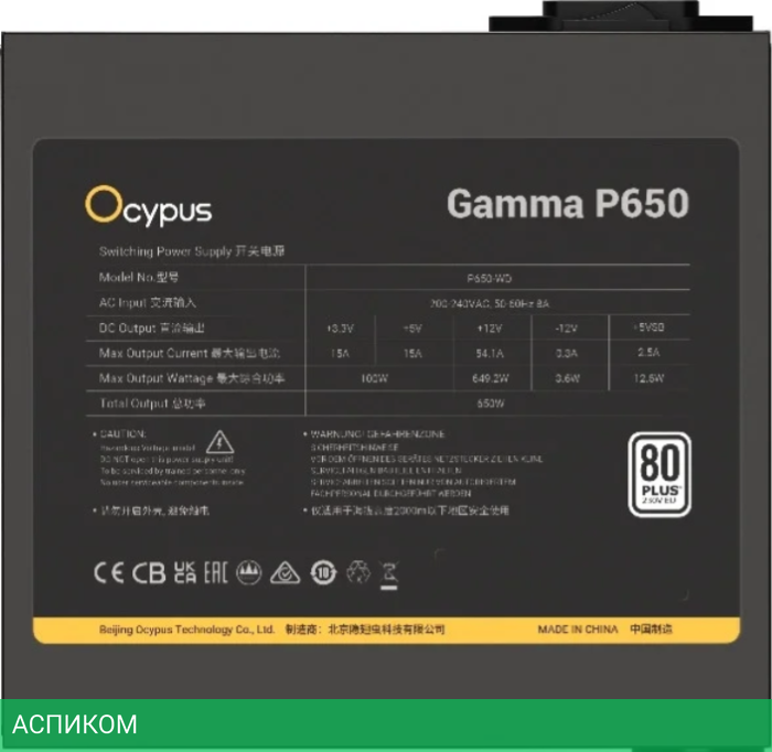 стандартный / 650.0 / черный / ATX / ATX12V 2.53 / нет / с активным PFC / 85.0 / 120 / базовый