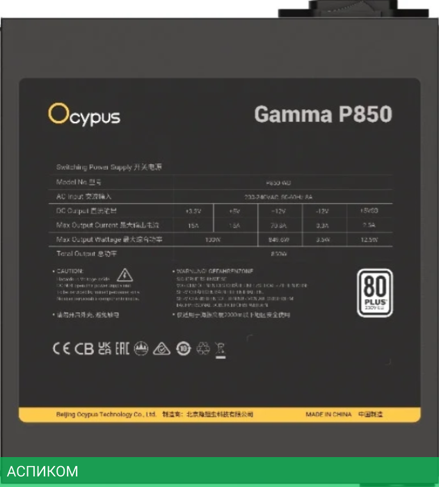 стандартный / 850.0 / черный / ATX / ATX12V 2.53 / нет / с активным PFC / 85.0 / 120 / базовый
