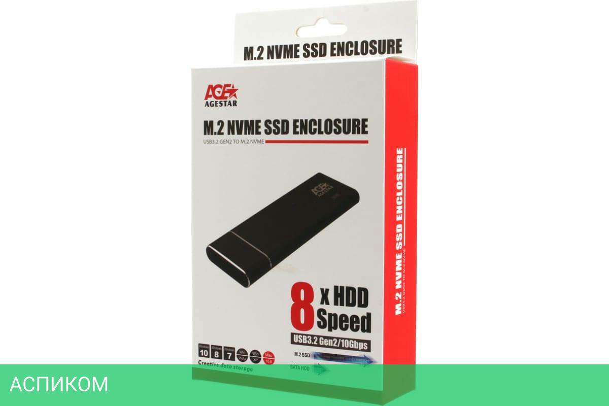 бокс / M.2 / PCIe с поддержкой NVMe / USB 3.2 Gen2 Type-A (10 Гбит/с) / 1 / USB / горизонтальное / алюминий