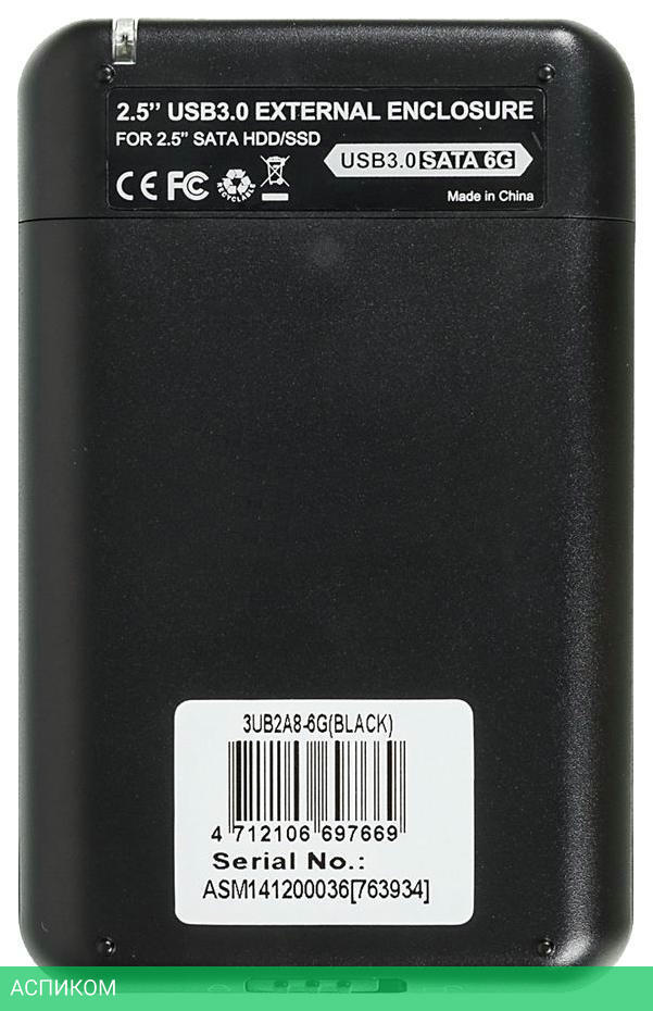 бокс / 2.5" / SATA / USB 3.2 Gen1 Type-A (5 Гбит/с) / 1 / USB / горизонтальное / да / пластик; алюминий