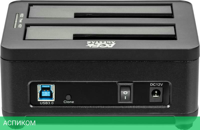 бокс / 2.5" и 3.5" / SATA / USB 3.2 Gen1 Type-A (5 Гбит/с) / 2 / блок питания / вертикальное / пластик