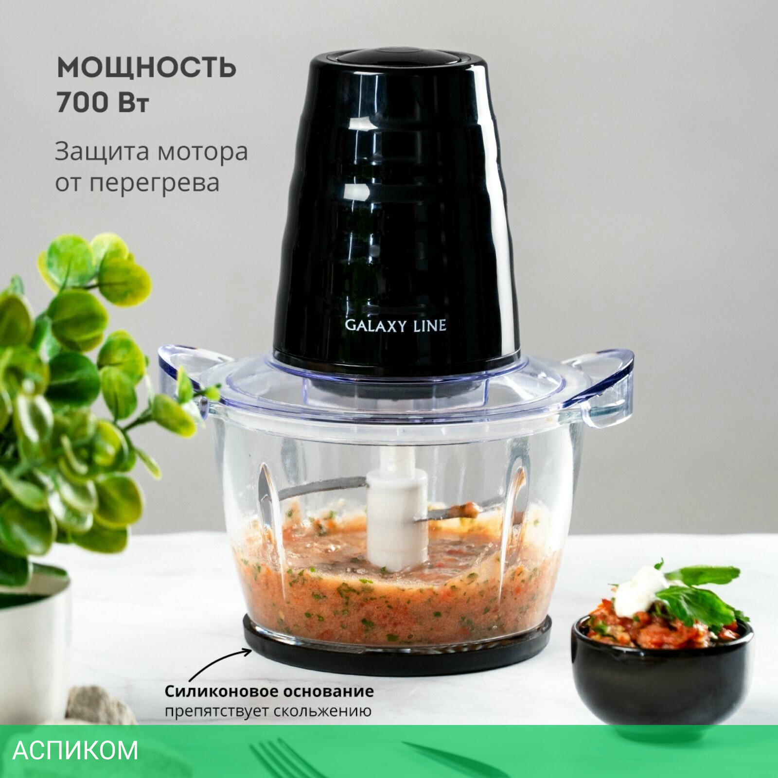 измельчитель (чоппер) / 700.0 / механическое / 1.0 / черный / стекло / от сети