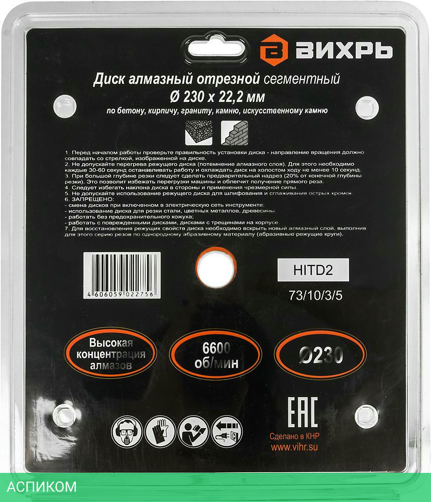 алмазный диск / для угловой шлифмашины (болгарки) / для бетона; для кирпича/камня