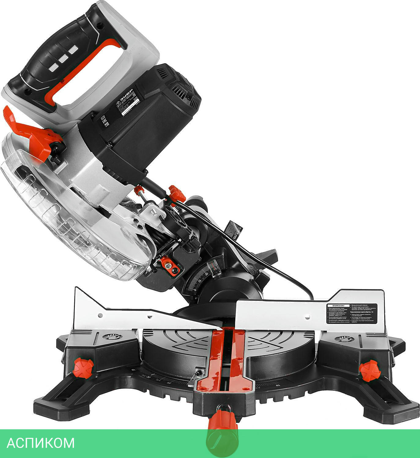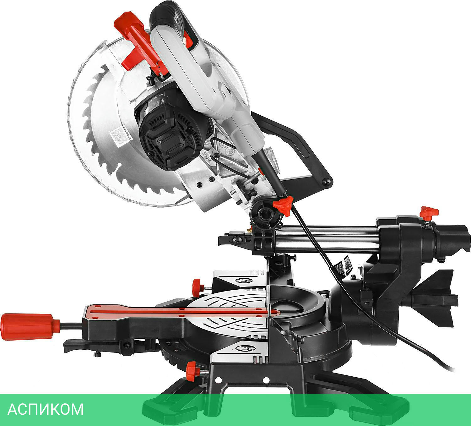 пила торцовочная 1 шт., диск пильный (установлен) 1 шт., удлинители стола 2 шт., струбцина 1 шт., мешок для сбора пыли 1 шт., ключ гаечный 1 шт., руководство по эксплуатации 1 экз.