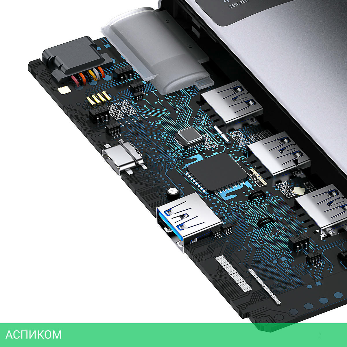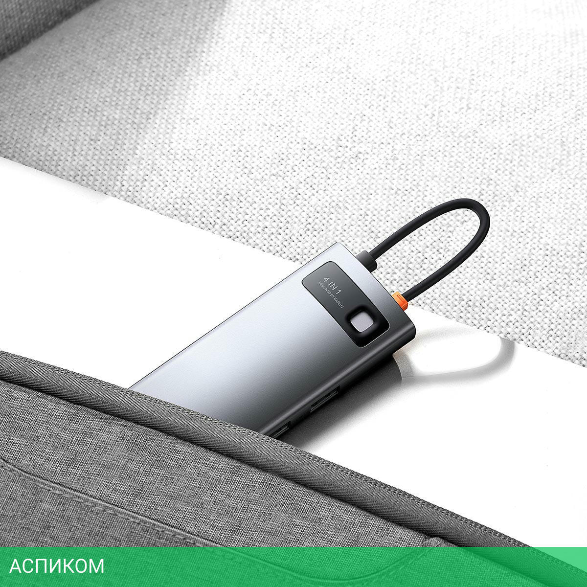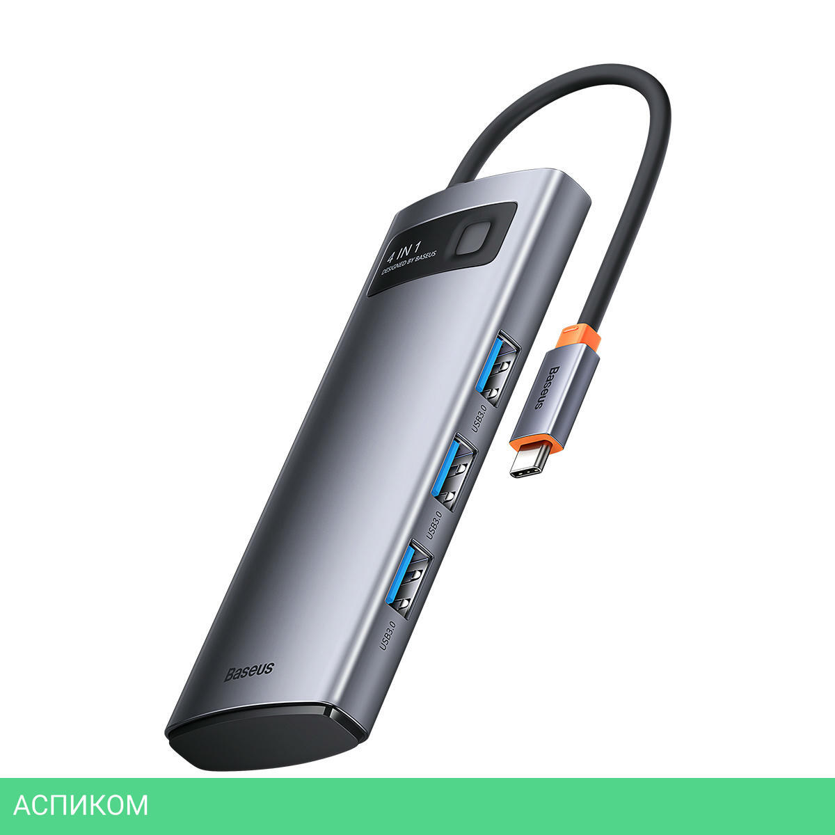 USB-хаб / внешнее / USB-C / USB Type-A 3.2 Gen1 (5 Гбит/с); USB-C / серебристый / 4 / нет