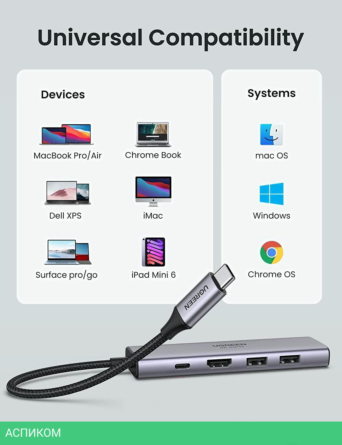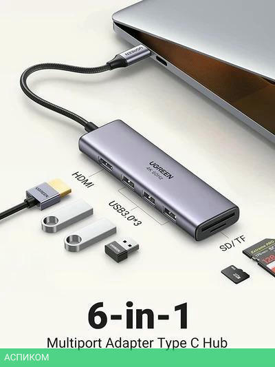 док-станция / внешнее / USB 3.2 Gen1 Type-C (5 Гбит/с) / USB Type-A 3.2 Gen1 (5 Гбит/с); HDMI / серый / 3 / да