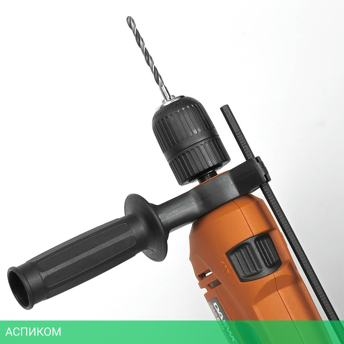 дрель, дополнительная рукоятка, ограничитель глубины сверления, запасные щетки