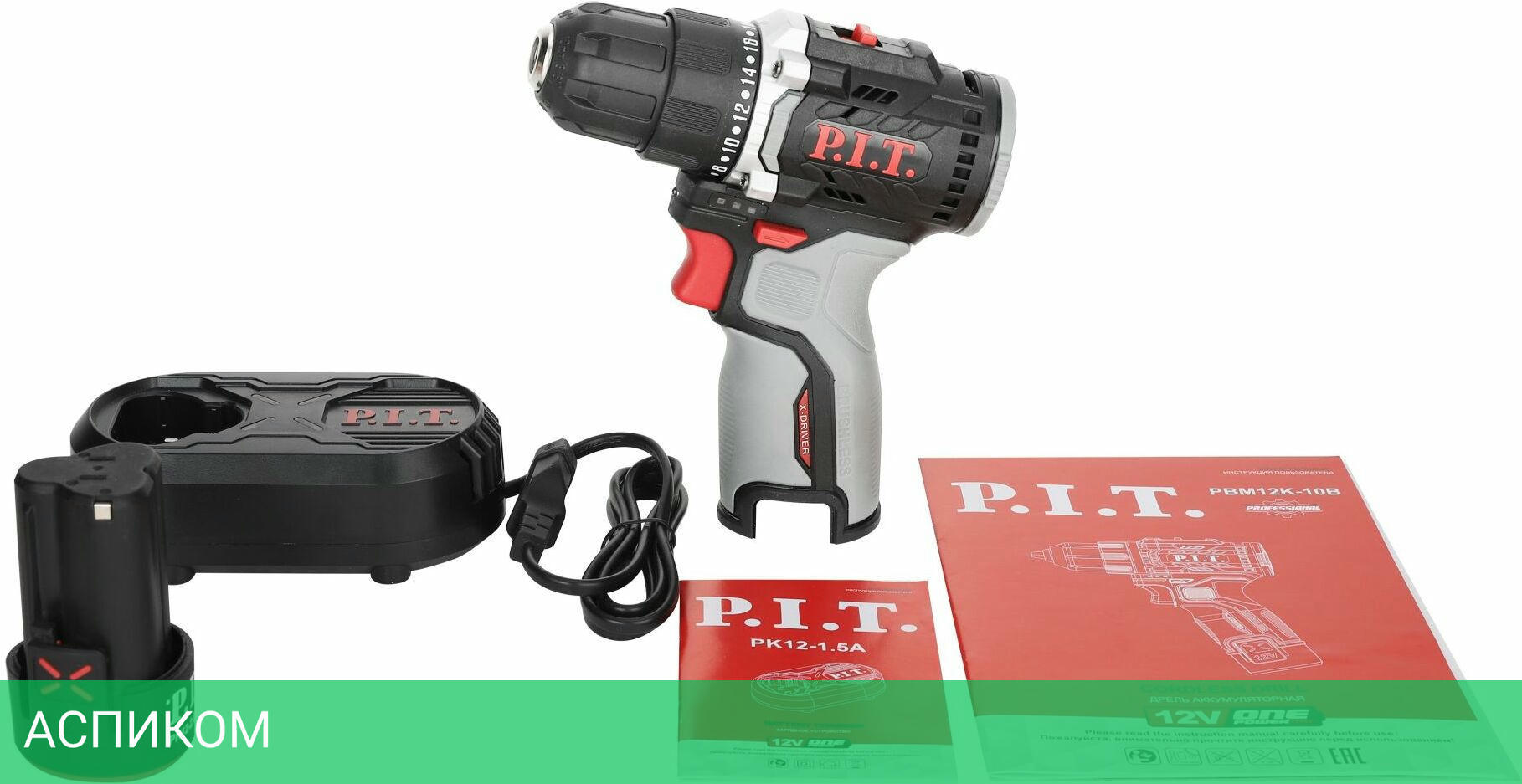 дрель аккумуляторная, аккумулятор 1шт., зарядное устройство, бита двусторонняя, магнитный адаптер, сверло по дереву, сверло по металлу, коробка, руководство по эксплуатации