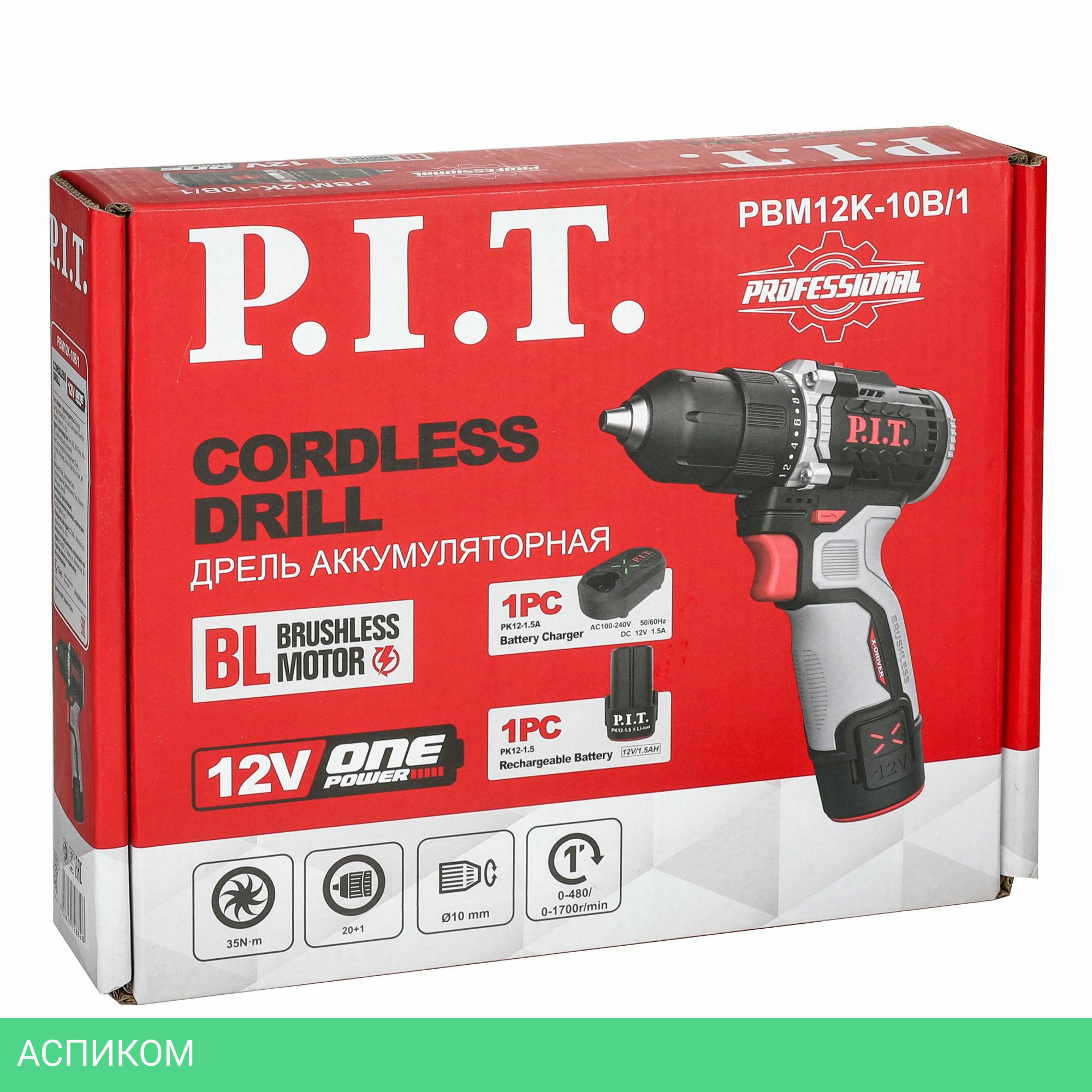 дрель-шуруповерт / аккумулятор / да / 12.0 / быстрозажимной / нет / 35.0 / 10 / 1700.0 / 0.65 / Li-ion / 1.5