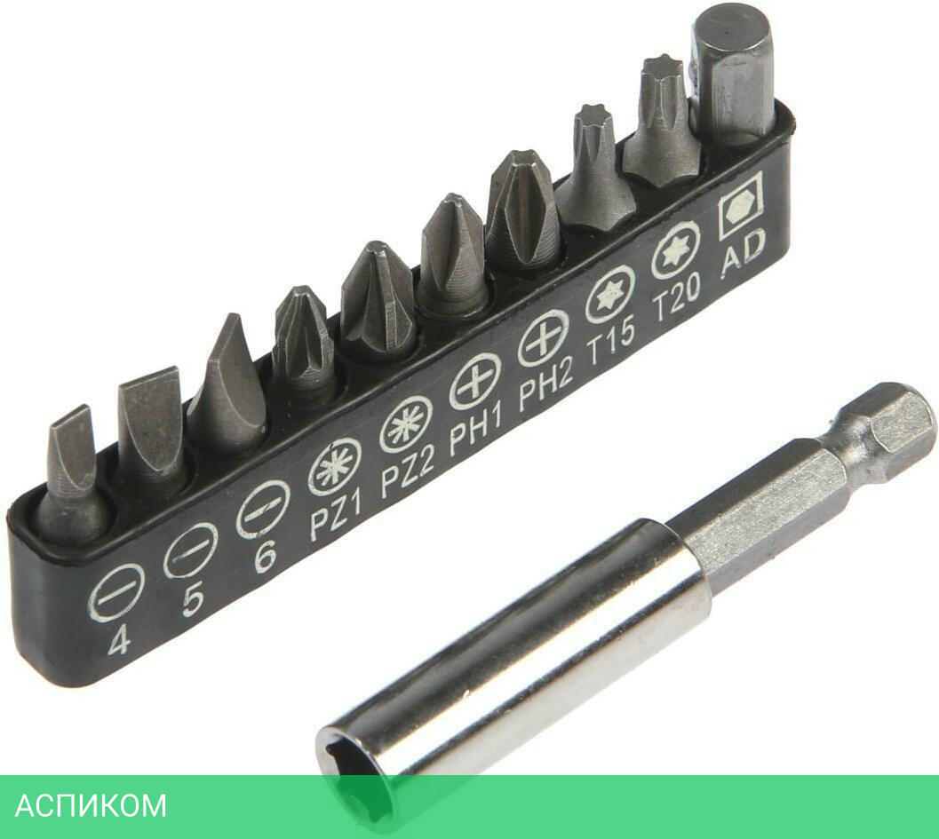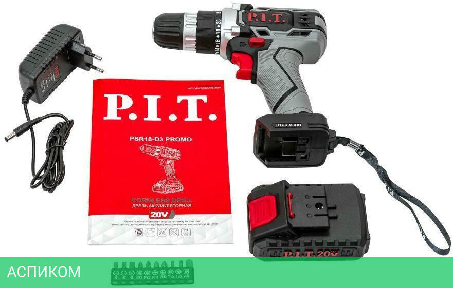 шуруповерт, устройство зарядное, батарея аккумуляторная - 1 шт., руководство по эксплуатации, набор бит - 10 шт., магнитный адаптер, сверло по дереву, сверло по металлу, адреса гарантийных мастерских по ремонту, картонная коробка